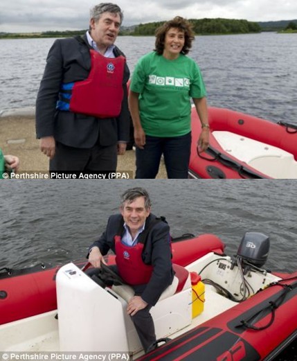 今年5月卸任以后,59歲的布朗行事似乎相當(dāng)?shù)驼{(diào)。但是近日,布朗又穿著“黑沉沉”、一成不變的西裝與他的兩個(gè)孩子在洛赫蓋利附近的公園湖上乘船度假。布朗將救生衣套在西裝、襯衫上,媒體看了直呼:“看在上帝的份上,莎拉(布朗妻子),把布朗拉走,給他一些休閑裝吧”。