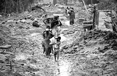在斯瓦特山谷一條村莊,洪災(zāi)為美軍和伊斯蘭武裝分子開辟新戰(zhàn)線,雙方爭相向受塔利班威脅地區(qū)的災(zāi)民派發(fā)援助物資。但30歲災(zāi)民毛拉表示,誰派發(fā)物資也沒所謂,他只想知道自己和家人如何找到糧食充饑,及盡快重建家園。