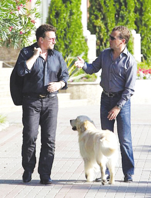 與普京的喜好不同,梅德韋杰夫似乎更加儒雅。他24日來(lái)到黑海之濱索契的一處海灘,約見愛爾蘭U2樂隊(duì)主唱波諾一同喝茶。U2樂隊(duì)本周將在俄羅斯首次舉行音樂會(huì)。