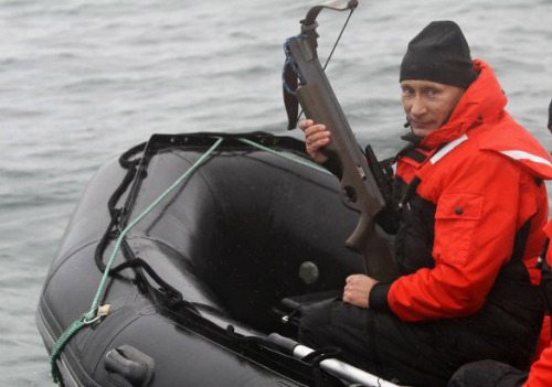 據(jù)俄羅斯《莫斯科時報》8月25日報道,俄羅斯總理普京經(jīng)常通過擺弄武器、顯露肌肉展現(xiàn)男子漢氣概。日前他前往勘察加半島附近的奧爾加港參與科學考察時,乘坐橡皮艇、手持勁弩,再次秀了一把射飛鏢獵捕灰鯨的風采。