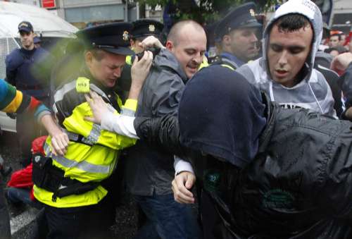 示威者包括反戰(zhàn)人士,他們不滿英國對北愛爾蘭的控制,以及布萊爾決定參與伊拉克戰(zhàn)爭。為了避免騷亂,都柏林市中心一些商店關門。警察封閉了鄰近幾條街道。
