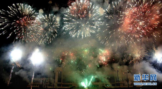 當(dāng)?shù)貢r(shí)間8日晚上,朝鮮首都平壤舉行了盛大的焰火表演。朝鮮最高人民會議常任委員會委員長金永南等朝鮮領(lǐng)導(dǎo)人觀看了焰火表演。