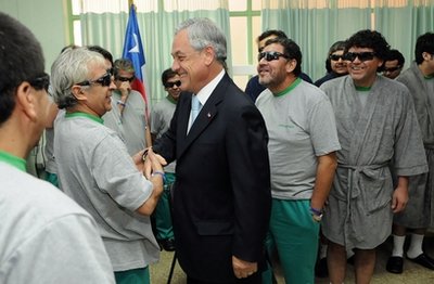 同時(shí),智利總統(tǒng)皮涅拉在堅(jiān)守礦井現(xiàn)場(chǎng),迎接所有礦工逐一出井后,當(dāng)天前往礦工所在醫(yī)院進(jìn)行探望。他與礦工們握手交談,對(duì)他們重獲新生表示祝賀。