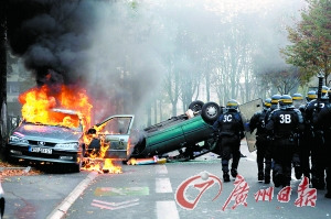 除封堵機場外,罷工民眾連日來還封堵通往燃油倉庫的道路,致使燃油供應緊張。截至19日,法國大約三分之一的加油站無油可售。19日,在巴黎街頭,戴面罩的年輕人與警方爆發(fā)沖突,警方向學生施放催淚彈,學生向警方投擲石塊,并焚燒汽車。