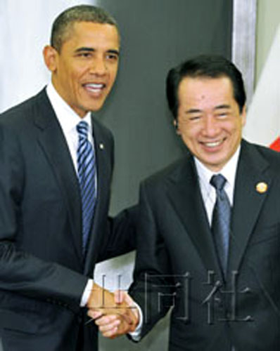 中新網(wǎng)11月13日電 據(jù)日本共同社13日報道,日本首相菅直人13日上午在橫濱與來日參加亞太經(jīng)合組織(APEC)峰會的美國總統(tǒng)奧巴馬舉行會談。兩國首腦就進(jìn)一步“深化”同盟關(guān)系達(dá)成一致。會談結(jié)束后,奧巴馬向記者表示,美國將“毫不動搖”地堅持保衛(wèi)日本這一決心。