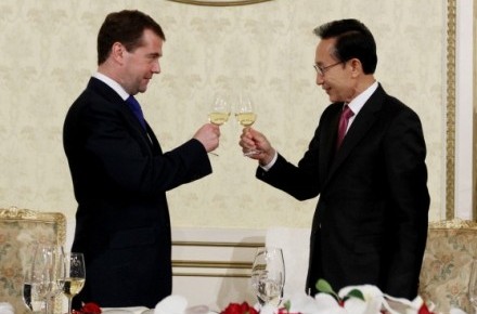 韓國(guó)對(duì)俄羅斯同樣興趣濃厚,11月10日在韓國(guó)總統(tǒng)府青瓦臺(tái)的共同記者會(huì)上,總統(tǒng)李明博也表示有意增加在俄羅斯投資。2009年,韓國(guó)對(duì)俄經(jīng)濟(jì)貢獻(xiàn)約13億美元,其中近5億美元為直接投資;今年初,韓國(guó)現(xiàn)代汽車位于圣彼得堡的組裝廠完工,這里每年可生產(chǎn)十萬(wàn)輛汽車。