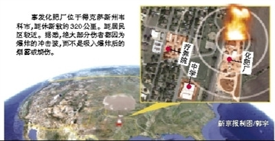 化肥廠共有約2.45萬公斤液態(tài)氨,它們在爆炸后可能大量擴(kuò)散到空氣中。有毒氣體可能威脅當(dāng)?shù)鼐用窠】怠?/p>