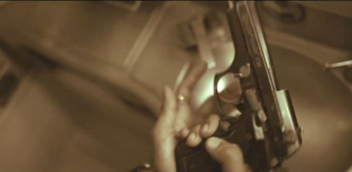 衛(wèi)生間里有人扣動(dòng)手槍的扳機(jī)。(圖片來源:英國《每日郵報(bào)》網(wǎng)站)