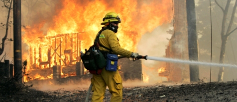10月23日,南加州各地超過6000名消防員參加了滅火行動,不過收效甚微。消防人員表示,災(zāi)區(qū)持續(xù)高溫以及經(jīng)常超過時速113公里的大風使得救火工作十分艱難。據(jù)氣象預(yù)報顯示,至少今后24小時之內(nèi),高溫大風天氣不會轉(zhuǎn)弱。