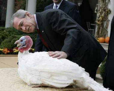 這個星期四就是美國一年一度的感恩節(jié),美國總統(tǒng)布什特別依照慣例,在白宮赦免了2只火雞,溫馨又有趣。今年總共有2只火雞得到總統(tǒng)的免死金牌,分別叫“May”和“Flower”,也就是當年清教徒來到新大陸所搭乘的“五月花號”的意思。