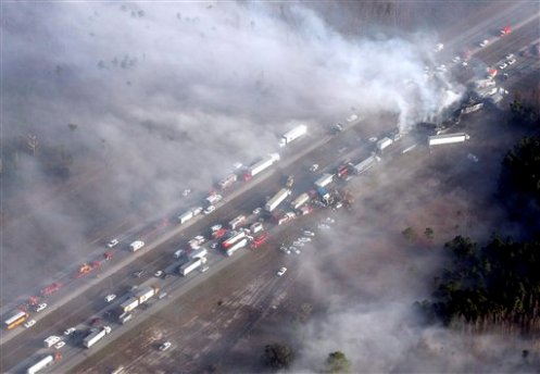 據(jù)悉,目前還不清楚這條通往佛州的東西主要干道何時重新開放。佛州高速公路的巡警拉里說,大約有38人受傷,其中5人傷勢嚴(yán)重。由于當(dāng)?shù)厣只馂?zāi)引起的濃煙和大霧相混合,導(dǎo)致事故發(fā)生路段的能見度極低。有幸存者說,在進(jìn)入事故發(fā)生路段的時候,甚至“看不見眼前自己的手”。