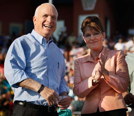 美國共和黨總統(tǒng)候選人麥凱恩與競選搭檔佩林。