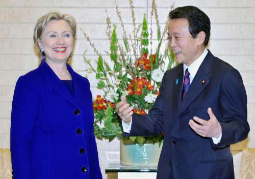 麻生與希拉里當(dāng)日就加強(qiáng)美日同盟和為克服世界性經(jīng)濟(jì)危機(jī)的合作會談。希拉里還宣布,麻生本月24日會應(yīng)邀到華盛頓和奧巴馬會談,他將是奧巴馬上任后在白宮接見的第一位外國領(lǐng)袖。在全球經(jīng)濟(jì)不景氣的情況下,這是一個向外界展示全球排名第一第二的經(jīng)濟(jì)大國攜手合作的良機(jī)。