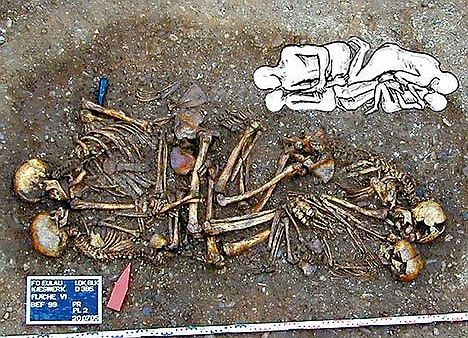 德國考古學(xué)家日前在安哈爾特尤魯?shù)貐^(qū)一個(gè)石器時(shí)代墓地發(fā)現(xiàn)了距今4600年前石器時(shí)代一個(gè)核心家庭(僅由父母及子女組成)的墓葬——墓室中埋葬著母親、父親以及兩個(gè)孩子的尸骨。