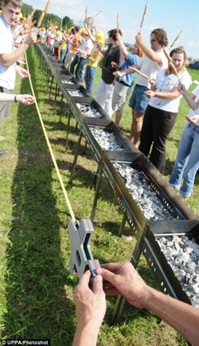日前,志愿者們在俄羅斯首都莫斯科集體烤肉,創(chuàng)造了世界上最長的燒烤攤的紀錄。