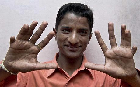 印度一名男子先天畸形,長有12個手指和14個腳趾,這個數(shù)字打破了此前同樣是一名印度人創(chuàng)造的長有12個手指和13個腳趾的世界紀錄。