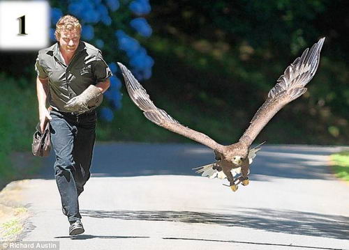 白尾海雕九十年代初期在英國(guó)絕跡,不過(guò)在啟動(dòng)重新引進(jìn)項(xiàng)目后,蘇格蘭地區(qū)已有一些白尾海雕。這只名為埃維的白尾海雕是在比利時(shí)人工飼養(yǎng)的,“她”兩歲的時(shí)候來(lái)到亨吉斯在達(dá)特穆?tīng)柕酿B(yǎng)鷹場(chǎng)。養(yǎng)鷹場(chǎng)的所有鳥(niǎo)都要經(jīng)常放飛鍛練,但亨吉斯也采取了一些措施以確保它們獲得一些“玩樂(lè)時(shí)間”。