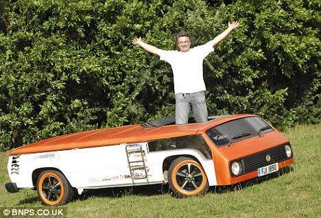 英國(guó)人安迪·桑德斯和三個(gè)朋友用了3天時(shí)間,將一輛高2.4米的大眾轎車(chē)改裝成了世界上最矮的露營(yíng)巴士——高度還不到1米。