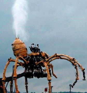 據(jù)悉,這只巨蛛由法國藝術(shù)家策劃并耗時(shí)18個(gè)月在法國制作,最后在英國某地秘密組裝而成。這只機(jī)械蜘蛛通過多人控制,每個(gè)腳都有著細(xì)膩的機(jī)械表現(xiàn),甚至可以輕柔到用腳和你的雨傘打招呼,它每小時(shí)可以爬行3.2公里(2英里)。 行人紛紛駐足觀看這一“自由劇場”秀。