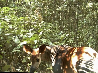 中新網9月12日電 綜合報道,倫敦動物學會11日發(fā)布了在非洲剛果國家公園叢林內裝設的隱藏相機首度拍攝到的額頭中央突起類似獨角的非洲鹿(okapi)照片,具有鹿和長頸鹿的特征,紋路卻像斑馬。