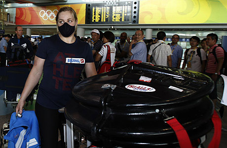 美國(guó)運(yùn)動(dòng)員戴面罩參加北京奧運(yùn)