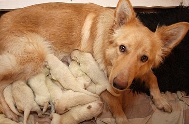 中新網(wǎng)2月4日電 據(jù)英國媒體報(bào)道,英國拉納克郡的消防員安德魯•路易斯日前在幫他三歲的德國牧羊犬萊拉接生產(chǎn)下7只狗崽后,兩小時(shí)后回家又驚奇地發(fā)現(xiàn),萊拉肚子里還有6只狗崽。