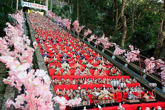 每年的3月3日是日本的傳統(tǒng)節(jié)日女兒節(jié),父母通常會把人偶裝飾在家門口,祈求女兒健康成長。勝浦居民從2001年開始,每年2月下旬起舉行盛大的女兒節(jié)人偶展示活動,女兒節(jié)已成為當(dāng)?shù)芈糜萎a(chǎn)業(yè)的支柱項目。今年有約3萬個人偶出現(xiàn)在勝浦的大街小巷。(新華社記者 任正來 攝)