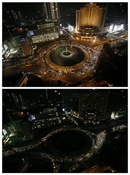熄燈活動(dòng)由世界自然保護(hù)基金(WWF)于去年在全球發(fā)起。隨著人們對(duì)全球變暖問題關(guān)注程度的提高,今年參加熄燈活動(dòng)的城市數(shù)量是去年的7倍。
