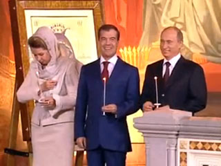 據(jù)俄羅斯新聞網(wǎng)報道,俄總統(tǒng)梅德韋杰夫和總理普京20日出席了在莫斯科救世主大教堂舉行的復活節(jié)祈禱儀式。然而,負責轉(zhuǎn)播節(jié)目解說的主持人在交代出場人物時將梅德韋杰夫和普京的頭銜混淆互換,這樣的口誤讓收看節(jié)目的觀眾忍俊不禁。