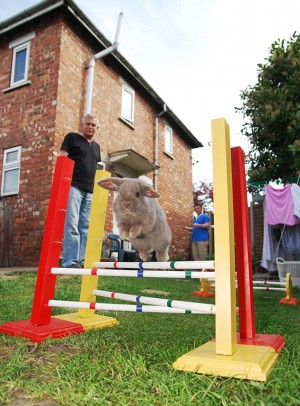 中新網(wǎng)5月4日電 對于一般人家的兔寶寶來說,每天最愜意的事莫過于睡睡懶覺或是啃啃胡蘿卜;然而英國哈斯拉姆家六只寵物兔的生活卻不落俗套,據(jù)英國《每日郵報》1日的報道,在主人的指導下,這六只小兔每天都要接受“跨欄”訓練,它們還滿懷信心的要去參加寵物比賽。