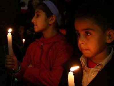 敘利亞兒童點(diǎn)燃蠟燭,參加抗議以色列空襲加沙的示威活動(dòng)。