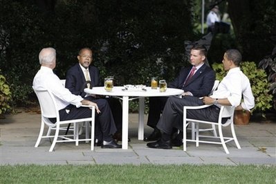這場“啤酒峰會”在北京時間31日早6時在白宮的南草坪上舉行。早前因誤會被捕的黑人教授蓋茨,以及警長克勞利獲邀前來一起喝啤酒,奧巴馬望藉此冰釋前嫌。