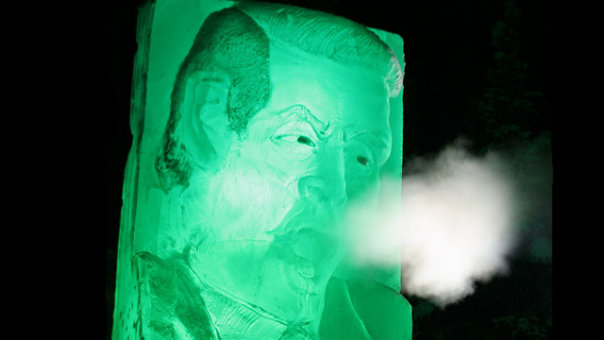 中新網(wǎng)1月7日電 據(jù)美國(guó)媒體報(bào)道,一座重達(dá)兩噸的美國(guó)前副總統(tǒng)戈?duì)柕谋裣袢涨俺霈F(xiàn)在美國(guó)阿拉斯加州菲爾班克斯市的一家酒館門(mén)前。冰雕中的戈?duì)柨磥?lái)神情凝重,嘴中還向外噴著寒氣,臉上的表情仿佛是在大聲疾呼全球變暖的危害。