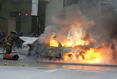 據(jù)悉,約2000名示威者前日在多倫多街頭游行,有示威者與防暴警察沖突,2人被捕。 據(jù)電視臺記者稱,示威者向警察投擲物件。一輛警車被焚毀。示威組織者說,將有5000到1萬人參加峰會期間的示威和抗議活動。
