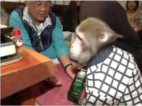 據(jù)臺灣“今日新聞”報(bào)道,日本古色古香的居酒屋,除了滿滿的人潮外,這里的服務(wù)生也是店里一大特色。老板飼養(yǎng)的猴子轉(zhuǎn)身一變成為店內(nèi)招牌服務(wù)生,讓民眾用餐感覺大不同。小猴子穿上跟員工一樣的格子制服,拎著酒瓶幫客人倒酒,意外受到顧客歡迎,還有民眾表示,“小猴子有些動作,甚至做得比人還好!”使得居酒屋的業(yè)績暴增2成以上。