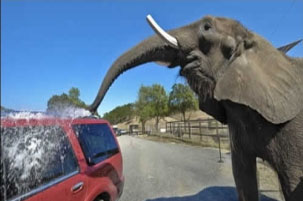 中新網(wǎng)9月25日電 許多民眾在洗車時(shí)乏味又耗時(shí)間,但在美國(guó)一家野生動(dòng)物園卻讓洗車變得超級(jí)有趣,因?yàn)樗麄兣纱笙髞韼兔ο窜,民眾不但可以讓愛車變干凈,還可近距離觀察大象。