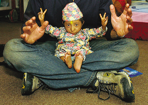 卡根德拉出生時只有600克重,F(xiàn)在,他也只有4.5公斤重,身高也只有約61厘米。他的母親塔納說,他剛生下來時“就像一只剛從蛋殼里孵出來的小雞!笨ǜ吕母赣H魯普說,兒子和家人吃一樣的食物,但就是長不大,“直到8歲時才能獨立行走”。去年,家人發(fā)現(xiàn)卡根德拉停止長個兒。醫(yī)生至今無法對卡根德拉無法長大的原因給出解釋,但猜測這可能與腦垂體機能失常有關(guān)。