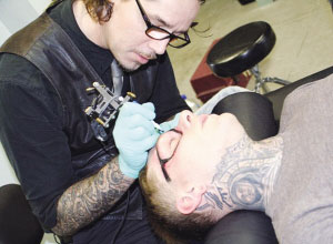 據(jù)悉,馬修除了面部外,幾乎全身上下都文滿了各種五花八門的文身圖案,馬修甚至連脖子上都文滿了圖案,使他看起來就好像穿了一件高領內(nèi)衣一樣。而這段“文眼鏡”視頻顯示,一名文身藝術家竟用電動文身針在馬修的眼睛部位文了一副和真眼鏡大小一模一樣的黑框眼鏡,令馬修看起來就像真的戴了一副“黑框眼鏡”一樣!