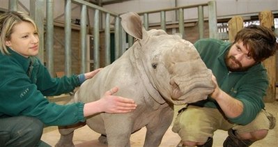 據(jù)報(bào)道,2009年12月21日,英國(guó)愛(ài)丁堡北部的布萊爾德拉蒙德野生動(dòng)物園(Blair Drummond Safari Park)接到一個(gè)匿名電話,電話那端的女子表示,自己是塞浦路斯人,在通過(guò)網(wǎng)絡(luò)攝像頭看動(dòng)物園的實(shí)時(shí)拍攝情況時(shí)發(fā)現(xiàn),一只懷孕已經(jīng)16個(gè)月的犀牛媽媽即將臨盆。