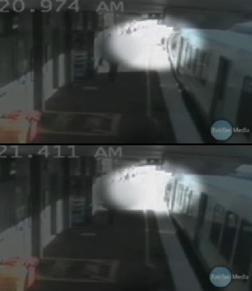 站臺(tái)上,嬰兒和祖母以及乘客們都被這一幕驚呆了,目瞪口呆,過(guò)了一會(huì)兒才知道朝站臺(tái)邊緣跑去。