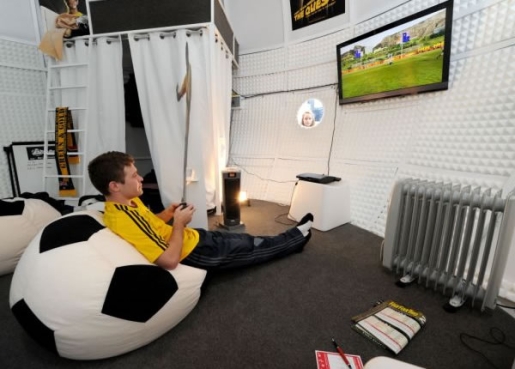 讓人羨慕的是,房間內(nèi)有一個(gè)裝滿了食物的冰箱、一臺(tái)計(jì)算機(jī)、一臺(tái)PS3游戲機(jī)、一張雙層床、一個(gè)吸塵器、免費(fèi)洗衣服務(wù)等。另外,還有專人幫亞當(dāng)桑塔羅薩打掃、洗衣服。不過,他坦言,剛開始的幾天遇到一些麻煩,那就是人們都很好奇,從足球的窗戶往里“偷窺”。