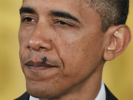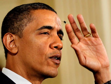 報道稱,22日,奧巴馬在白宮東廳就醫(yī)改問題發(fā)表演講。演講中,一只惱人的蒼蠅不停的在奧巴馬臉旁徘徊,它甚至一度還停在總統(tǒng)的上嘴唇“歇腳”。平日里指點江山的總統(tǒng)面對這一狀況也顧不上保持形象,數(shù)度中斷演講用手驅(qū)趕縈繞耳邊的蒼蠅。