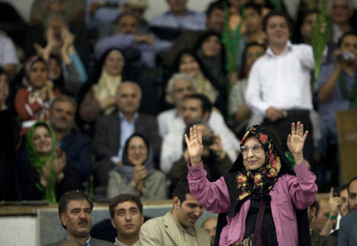 隨著大選如火如荼地開展,一位伊朗女性逐漸被大家所熟悉,甚至被西方媒體稱為“伊朗政壇上的新星”,她就是扎哈拉·拉赫納娃德——穆薩維的妻子。自丈夫參選后,穆薩維夫婦總是形影不離地出現(xiàn),拉赫納娃德甚至多次單獨代表穆薩維參加集會。現(xiàn)年64歲的她擁有博士后學歷,曾經(jīng)是阿爾扎哈拉女子大學的校長,也曾擔任前總統(tǒng)哈塔米的顧問,可謂穆薩維的“得力干將”。