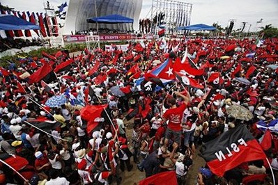 1979年7月19日,桑地諾民族解放陣線(桑解陣)帶領(lǐng)尼加拉瓜人民推翻了索摩查家族長達40余年的專制統(tǒng)治,入主首都馬那瓜,聯(lián)合社會各界政治力量成立了民族復(fù)興政府。但桑解陣在1990年全國大選中敗北,成為在野黨。之后,桑解陣幾經(jīng)沉浮,于2006年11月重新成為執(zhí)政黨。桑解陣總書記奧爾特加在2006年11月的尼加拉瓜總統(tǒng)選舉中勝出。