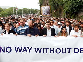 5月26日格魯吉亞反對(duì)派在首都第比利斯舉行大規(guī)模游行示威活動(dòng),從全國各地趕來的約6.5萬名支持者參加。為了迫使總統(tǒng)薩卡什維利下臺(tái),反對(duì)派宣布準(zhǔn)備采取激進(jìn)措施,封鎖鐵路、國道和機(jī)場。反對(duì)派“為了統(tǒng)一的格魯吉亞”運(yùn)動(dòng)領(lǐng)袖別謝利婭在議會(huì)大廈前的集會(huì)上宣布:“今天我們將封鎖鐵道,從今天起我們將開始最激進(jìn)的行動(dòng)。”反對(duì)派保守黨領(lǐng)袖濟(jì)濟(jì)古里宣布:“我們計(jì)劃首先和平封鎖鐵路,然后是機(jī)場。我們的行動(dòng)將是和平的,但極其激進(jìn)!狈磳(duì)派“格魯吉亞道路”黨領(lǐng)袖祖拉比什維利宣布:“我們將用汽車封鎖中央(公路)干線,然后步行去封鎖鐵路!