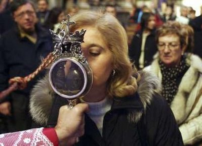 上周,一名51歲的男子因感染甲流,在那不勒斯醫(yī)院不治身亡,成為意大利第一例甲流致死病例。由此,周一,天主教那不勒斯教會與城市當局共同決定,為預(yù)防甲流病毒大規(guī)模傳播,將禁止信徒在本月晚些時候開始的宗教節(jié)日上親吻裝有圣人血液的玻璃小瓶。從9月19日開始,這樽裝有天主教圣人圣亞努阿里烏斯血液的玻璃瓶將在那不勒斯市的主教座堂展出一周,展覽期間,無論前來膜拜的信徒有多么虔誠,也不能用嘴親吻瓶子,只能用額頭輕觸瓶子。