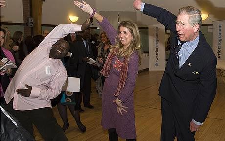 查爾斯王儲(chǔ)似乎對氣功很感興趣,氣功教練蓋伊·何教了他兩個(gè)簡單動(dòng)作:先將右手舉到頭頂,手掌向上舉起,左手也做同樣的動(dòng)作,最后雙手重復(fù)這個(gè)動(dòng)作。蓋伊告訴他,想象自己手掌中正有一個(gè)能量球,但查爾斯的“能量球”掉下來兩次。“他的能量很好,他的精神力也很集中,但他需要一點(diǎn)兒技術(shù)。”查爾斯告訴另一位練習(xí)者說:“幾年前我的胳膊曾有兩處骨折,這讓我做起動(dòng)作來很難!