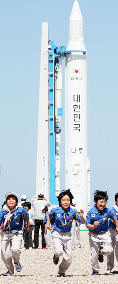 當(dāng)天下午2時(shí)在羅老太空中心的運(yùn)載火箭組裝廠舉行了竣工儀式,有1100多人前來(lái)出席。韓國(guó)總統(tǒng)李明博致詞說(shuō):“今后10年內(nèi),韓國(guó)要靠自己力量開啟‘太空時(shí)代’,躋身世界7大航天強(qiáng)國(guó)!