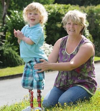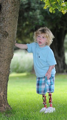 中新網(wǎng)7月29日電 英國一名3歲男童前年患上腦膜炎,要切除雙腿,最近他裝上1.25萬英鎊的仿生義肢,并重新學(xué)會走路。