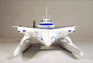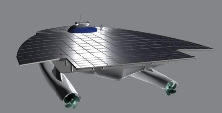 船的上方設(shè)有面積達(dá)500平方米的太陽(yáng)能板,圍繞著中間凸起的駕駛艙。